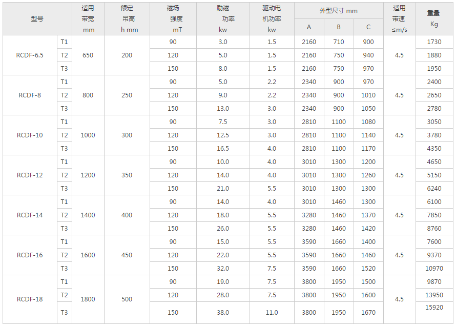 RCDF型油冷自卸式電磁除鐵器是在RCDE系列除鐵器的基礎(chǔ)增加了驅(qū)動(dòng)電機(jī)、滾筒、帶刮板的卸鐵膠帶等組成的卸鐵機(jī)構(gòu)。具有磁力大、散熱快、防塵、防雨、耐腐蝕、連續(xù)工作、維護(hù)費(fèi)用低等優(yōu)點(diǎn)。
