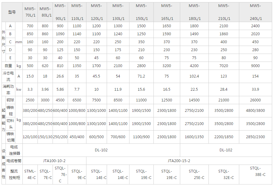 MW5型起重電磁鐵采用全密封結構,防塵、防潮性能良好。勵磁線圈經特殊工藝處理,絕緣材料耐熱等級達到c級,提高了線圈的電氣和機械性能,延長了使用壽命。安裝、維護簡便,運行可靠。適用于冶金、礦山、機械制造,交通運輸等行業吊運鋼鐵等磁性物料。