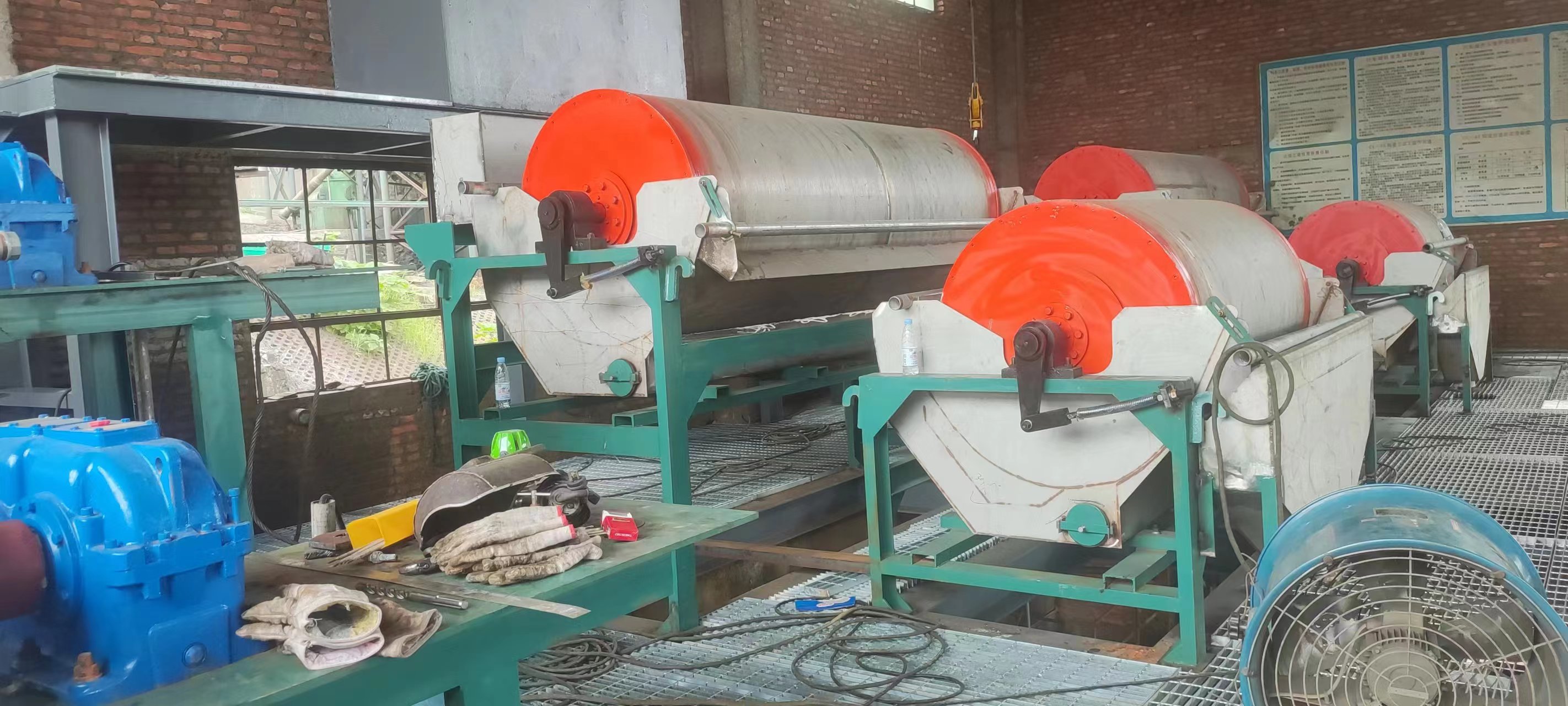 其原理是當礦漿進入磁場區時,其中強磁性礦物被吸附在圓筒表面,弱磁性和非磁性礦物被水流沖洗排出,而吸附在圓筒表面上的磁性礦物隨圓筒旋轉,被帶出磁場區,用沖洗水沖入精礦槽中,完成分選作業。