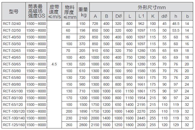 RCT型全磁滾筒與RCTG系列等同,亦稱磁滑輪或干式大塊磁選機。RCT型全磁滾筒其內部采用高性能強磁材料組成強力磁系,具有磁場強度高、結構簡單、使用方便、不需要維修、不消耗電力,常年使用退磁率小等特點。RCT型全磁滾筒可用于水泥、磁選、礦山、鋼鐵、化工、耐火材料、垃圾處理等行業的選鐵。