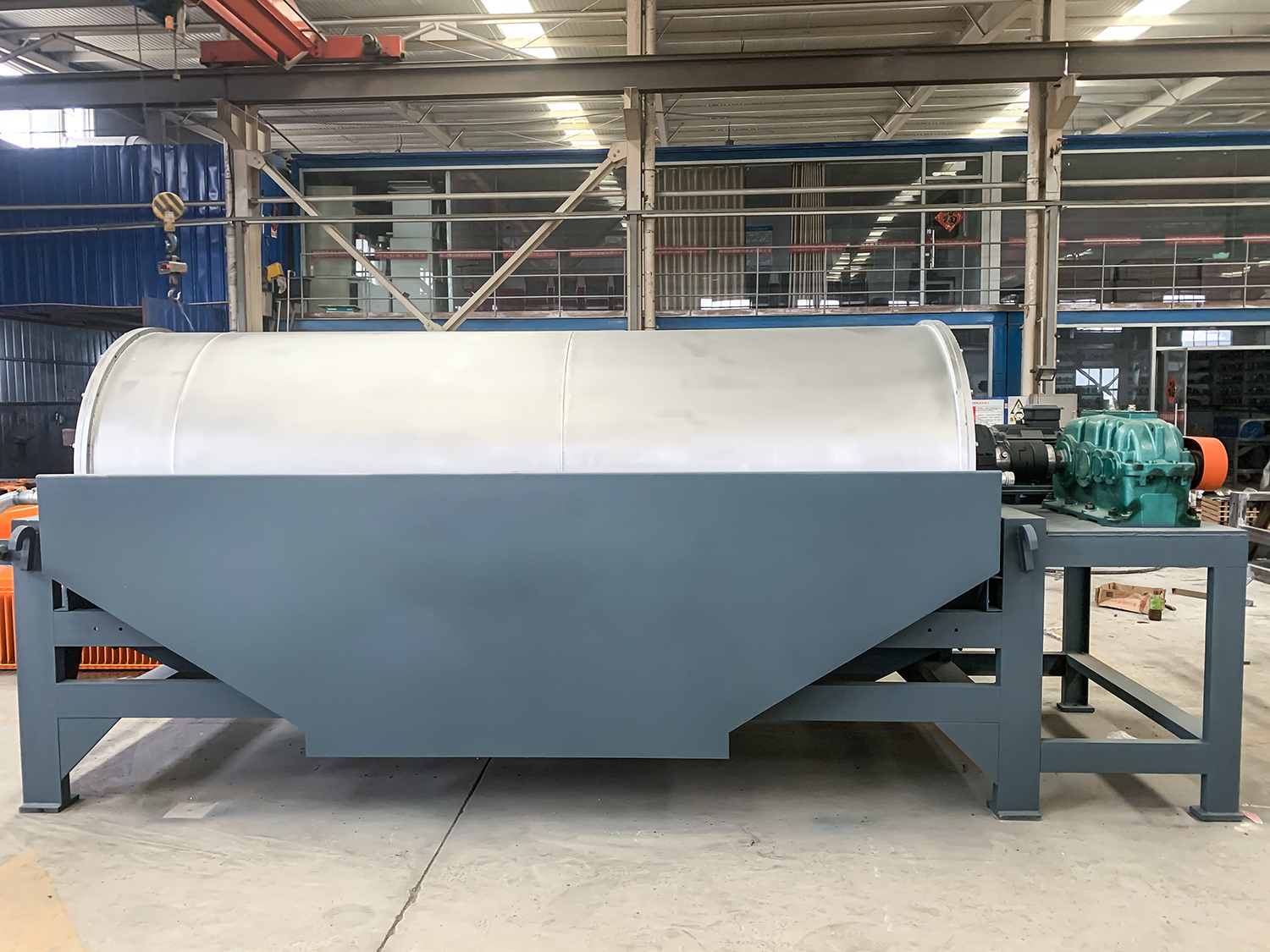 CTS型順流式濕式磁選機適用于濕式選別礦石粒度為6~0mm的較粗粒度強磁性物料的預選和精選,或者除去非磁性礦物中混雜的強磁性礦物。本機可以連續給礦和排礦,磁場強度大,磁場梯度高,工作間隙大,具有較高的處理能力。亦可多臺串連工作。二、示意圖